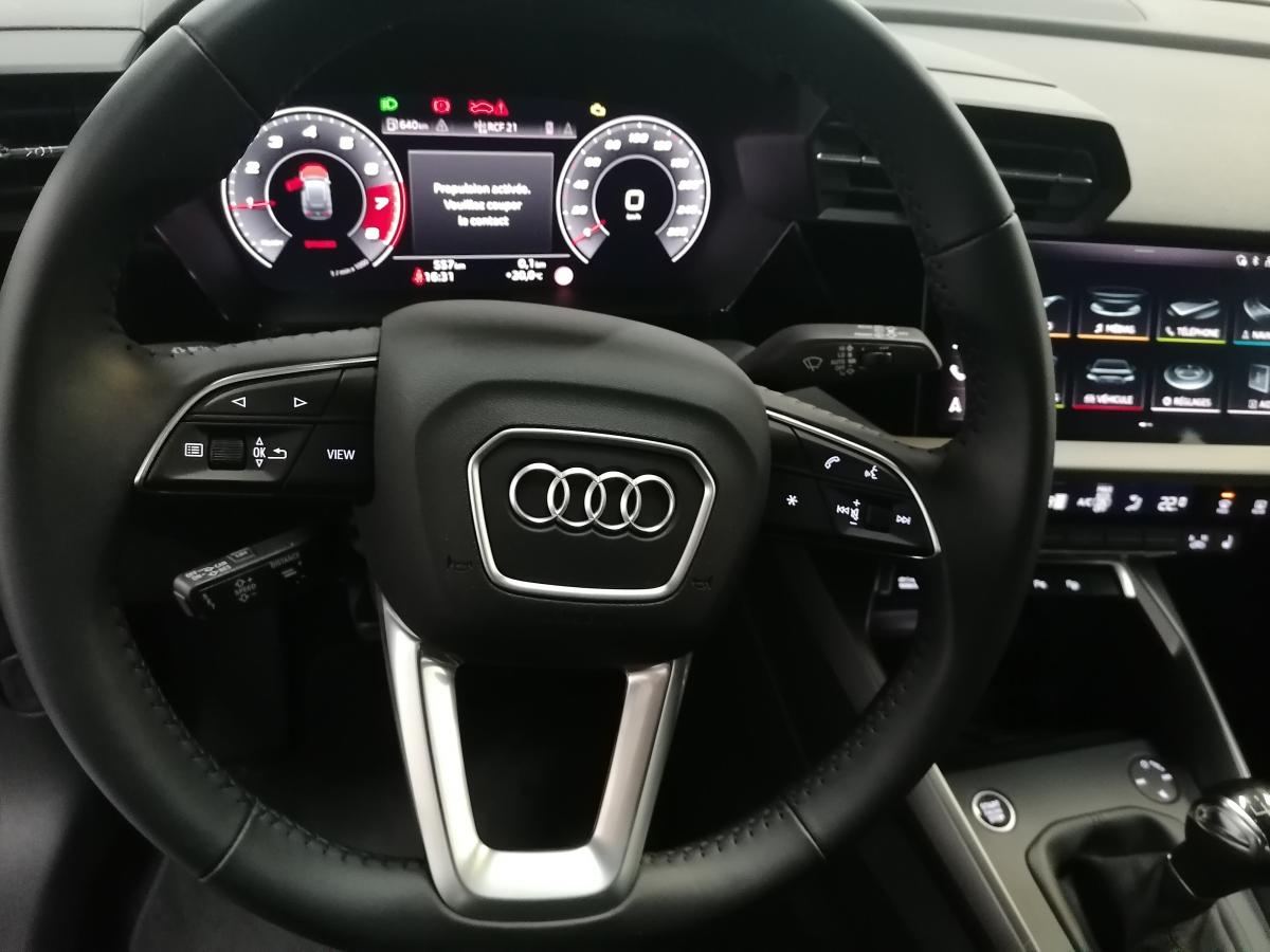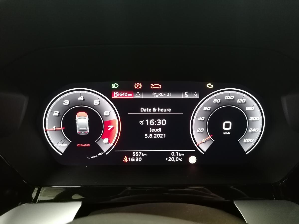 Adaptive Cruise Control Audi virtual cockpit plus Avertissement de changement de voie, avec avertissement de sortie... Avertissement de franchissement de ligne Jantes en alliage léger, style dynamique à 5 bras,... Pack Eclairage d’ambiance Peinture métallisée Gris Daytona Sièges avant chauffants ...