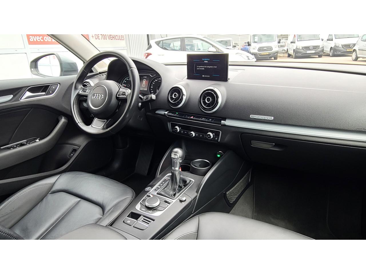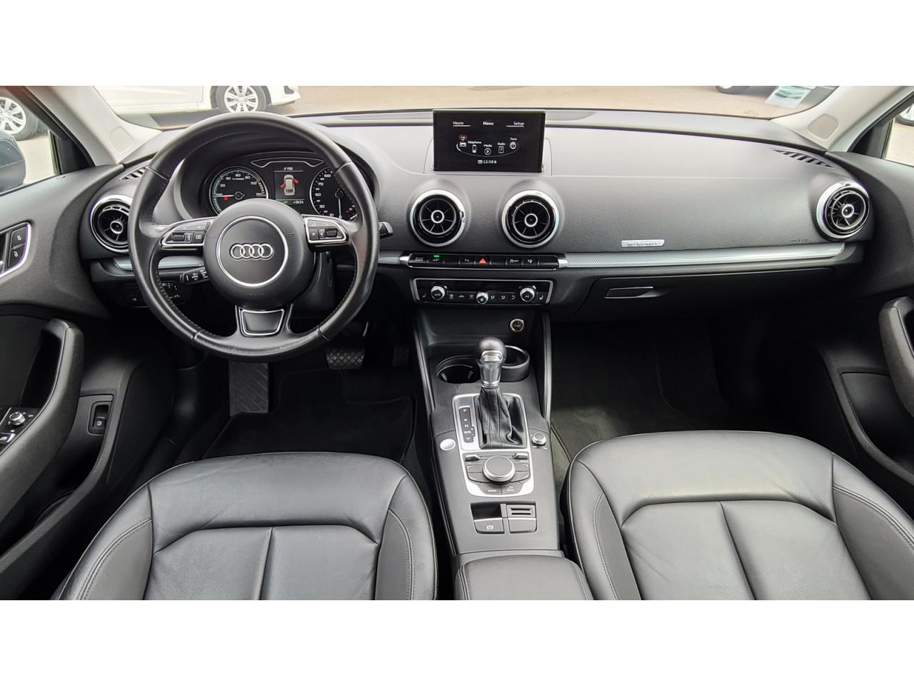 Accoudoir central avant coulissant en longueur, avec vide-poches relevable et inclinaison réglableAdvanced KeyAntipatinage (ASR)Audi drive select, permet différents réglages:Efficience, Confort, Dynamique, Auto et IndividuelAudi parking system plus : signal acoustique et visuel d'aide au stationnement avant et arrière par pictogrammes sur l'écranAudi singleframe e-tron : calandre noir mat avec entourage et entretoises horizontales chromés ; avec prise de charge derrière les anneaux Audi chromés placés au centreAudi Sound System avec 10 haut-parleursBas de caisse type S lineBoîte à gants grand volume côté passager avant, éclairéeBoîte automatique S tronic à 6 vitesses avec moteur électrique intégré : unité intégrée composée d'un embrayage, d'un moteur électrique et d'une boîte séquentielle 6 vitesses à double embrayage avCeintures de sécurité 3 points automatiques pour toutes les places, prétensionneurs pyrotechniques, réglage des ceintures en hauteur à l'avant ; limiteurs de tension sur toutes les places extérieuresChâssis dynamique. À l'avant : suspension Mc-Pherson avec bras triangulés transversaux inférieurs, châssis auxiliaire en aluminium et barre stabilisatrice. À l'arrière : essieu arrière à quatre bras avec système d'amoClimatisation automatique Confort avec réglage asservi à la position du soleilContrôle électronique de stabilisation (ESC) avec blocage transversal électroniqueContrôle de la pression des pneusDétecteur de pluie et de luminosité incluant pare-brise avec bande grise sur la partie supérieureDirection assistée électromécanique avec assistance asservie à la vitesse (servotronic)Dossier de banquette arrière rabattable en deux parties 40/60 ou complètementEssuie-glace arrière à déclenchement automatique au passage de la marche arrièreFeux arrière avec feux de recul blancs et feux de brouillard arrière, incluant troisième feu stop surélevé et éclairage de plaque à LEDFeux de freinage adaptatifsFixation pour sièges enfants ISOFIX et Top Tether pour les places arrière extérieuresIdentification du modèle/technologie : inscriptions e-tron à l'extérieur sur la calandre singleframe, le hayon, les ailes avant et les moulures de seuilInscriptions e-tron à l'intérieur sur le pommeau du levier de vitesses et sur le tableau de bord côté passager avantLève-vitres à l'avant et à l'arrière, électriques, avec protection antipincement, ouverture/fermeture par le verrouillage centralisé, fonction ouverture/fermeture par impulsionLunette arrière dégivrante, avec minuterieMoulures des seuils de portes spécifiques e-tronPack aluminium extérieurPare-chocs dans la couleur de la carrosseriePare-soleil rabattables et pivotants, côtés conducteur et passager avant, avec miroir de courtoisie occultablePhares antibrouillard halogènes, intégrés à la jupe avantPoignées de maintien. 4 poignées avec mécanisme amortisseur, rabattables, encastrées dans le pavillonpréequipement navigationPrise de courant 12 volts sur la console centrale à l'avantRégulateur de vitesse adaptatifRétroviseur intérieur automatique jour/nuitRétroviseurs extérieurs électriques et dégivrants incluant buses de lave-glaces dégivrantes et escamotables électriquementRétroviseurs extérieurs avec clignotants à LED intégrés réglables électriquement et dégivrants, miroir asphérique à gauche, convexe à droite. Buses de lave-glace dégivrantesSellerie en cuir MilanoServices Audi connect e-tron permettant d'accéder via un Smartphone ou la plateforme Web (www.a3etron.audi.com) à diverses informations et de commander différentes fonctions. Ces services sont gratuits pendant 3 ansSièges à l'avant avec positionnement en longueur et inclinaison de dossier réglables manuellementSièges conducteur et passager avant réglables en hauteurSorties d'échappement doubles à gauche chroméesSystème d'airbags de têteSystème d'information du conducteur avec écran couleur haute résolution de 3,5 poucesSystème de freinage avec antiblocage (ABS) et répartiteur électronique de freinage (EBV)Système de ventilation et chauffage 4 diffuseurs d'air rondsTéléphone portable (Bluetooth), commande sur volant multifonction, mains libres et audiostreamingTémoins de contrôle pour, entre autres : airbag, ABS, ESC/ASR, frein de stationnement serré, électronique EDS, phares, clignotants, circuit de freinage, pression d'huile moteur, fermeture du coffre, système électrique du moteur, système de pr&eacuTapis complémentaires à l'avant et à l'arrière assortis à la couleur de la moquetteTouche EV permet de choisir parmi les différents modes : EV (ou tout électrique), Hybrid Auto, Hybrid Hold,Hybrid ChargeVerrouillage centralisé à télécommandeVide-poches sur les habillages des portières ainsi que sur la console centrale avec porte-boissonVolant réglable en hauteur et en profondeurVolant Sport 3 branches multifonction en cuir avec palettes de changement de vitesseWattmètre sur le combiné d'instruments qui indique l'état du système