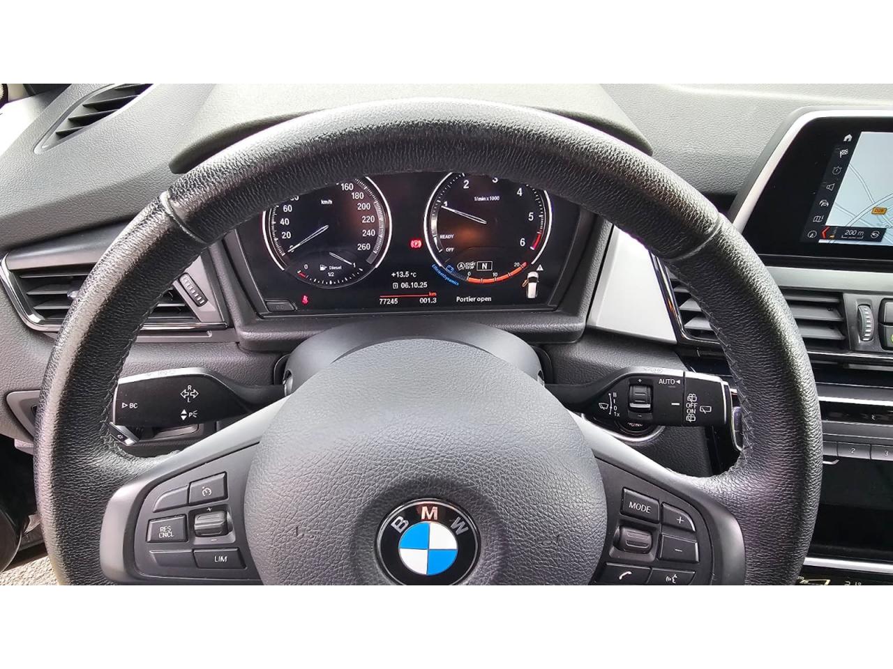 Aide au démarrage en côte, pré-charge du circuit de freinage au lever de pied, séchage des disques de freins et compensation du fadingAllumage automatique des projecteursAttention Assist : système de détection de somnolenceAvertisseur de risque de collision (détection par caméra)Climatisation automatique bi-zoneContrôle de freinage en courbe CBCContrôle de la TransmissionContrôle Dynamique de la Stabilité DSC+ avec fonctionnalités étenduesContrôle Dynamique de la Traction DTCDémarrage sans clé via le bouton de démarrage Start/Stop avec contour chroméDifférentiel à blocage électronique pour optimiser la motricitéDirection Servotronic à assistance variable en fonction de la vitesseFeux de jour à LEDFixations Isofix aux places latérales arrièreFrein de parking électromécaniqueInterface Bluetooth pour téléphone portable (mains-libres)Jantes en alliage 16Limiteur et régulateur de vitesse avec maintien de la vitesse en descenteMesures BMW EfficientDynamicsNavigation Multimédia BusinessNotice d'utilisation intégréeOrdinateur de bord, Check-Control et indicateur de température extérieureOuverture et fermeture électriques du hayonProjecteur LEDCamera reculRadars de stationnement avant et arrière PDC avec représentation graphique des obstacles sur l'écran d'information centralSélecteur de mode de conduite - 3 modes : "ECO PRO", "Confort" et "Sport"Teinte de carrosserie métalliséeTouches multifonctions sur le volantTuner DABVitrage teinté pour réduire l'échauffement dû à l'ensoleillementVitres avant et arrière électriques à impulsion avec système ant-ipincementVolant 3 branches, réglable en hauteur et en profondeur