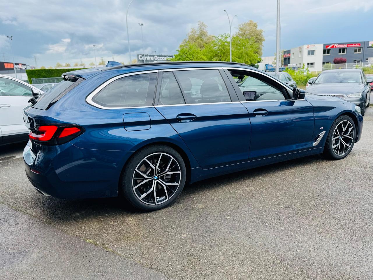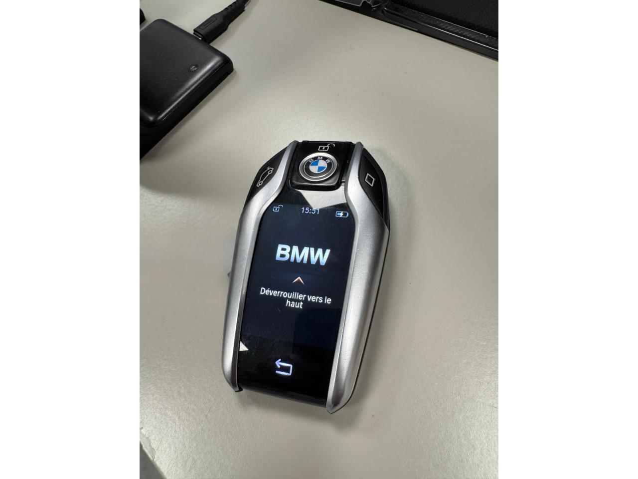 Affichage tête haute HUD couleur BMW Display Key avec système tactile BMW Live Cockpit Navigation Pro Commande gestuelle BMW Jantes alliage 19" style 845M bicolores/ Jetblack Park Assist Plus : Inclus Caméra 360 et Stationnement... Sellerie Cuir Dakota Schwarz Teinte de carrosserie Phytonicblau métallisé TVA récupérable Vitrage calorifuge