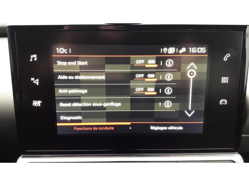 ABS avec répartiteur électronique de freinage (REF) et aide au freinage d'urgence (AFU)Accoudoir central avant avec rangementAide au démarrage en penteAide au stationnement arrièreAirbags frontaux, latéraux AV et rideauxAllumage automatique des phares + capteurs de pluieAntipatinage (ASR)Appuie-têtes réglables en hauteur et escamotables à l'arrièreBanquette arrière fractionnable 2/3 - 1/3CITROËN Connect Radio sur tablette tactile 7"Clignotants impulsionnels 3 coupsCommandes au volantCondamnation centralisée avec 1 plip (3 boutons) et condamnation automatique du coffre et des portes en roulantContrôle dynamique de stabilité (ESP)Détecteurs de sous-gonflageEcran multimedia tactile: radio mp3 bluetooth et connexion usbFeux arrière 3D à LEDFeux diurnes à LEDFixations ISOFIX pour sièges enfants aux places latérales arrièreFonction Start/StopGps couleur à écran tactileIndicateur de changement de rapportJantes alliage 16" SQUARE GreyKit mains libres Bluetooh avec prise USBLève-vitres avant électriques et séquentielsProjecteurs antibrouillard avant avec éclairage statique d'intersectionProjecteurs directionnelsRégulateur - limiteur de vitesse programmableRétroviseurs extérieurs électriques dégivrantsSellerie tissu Mica GreySiège conducteur réglable en hauteurSystème audio MP3 6 Haut-ParleursTablette tactile 7"Volant en croûte de cuirVolant réglable en hauteur et profondeur