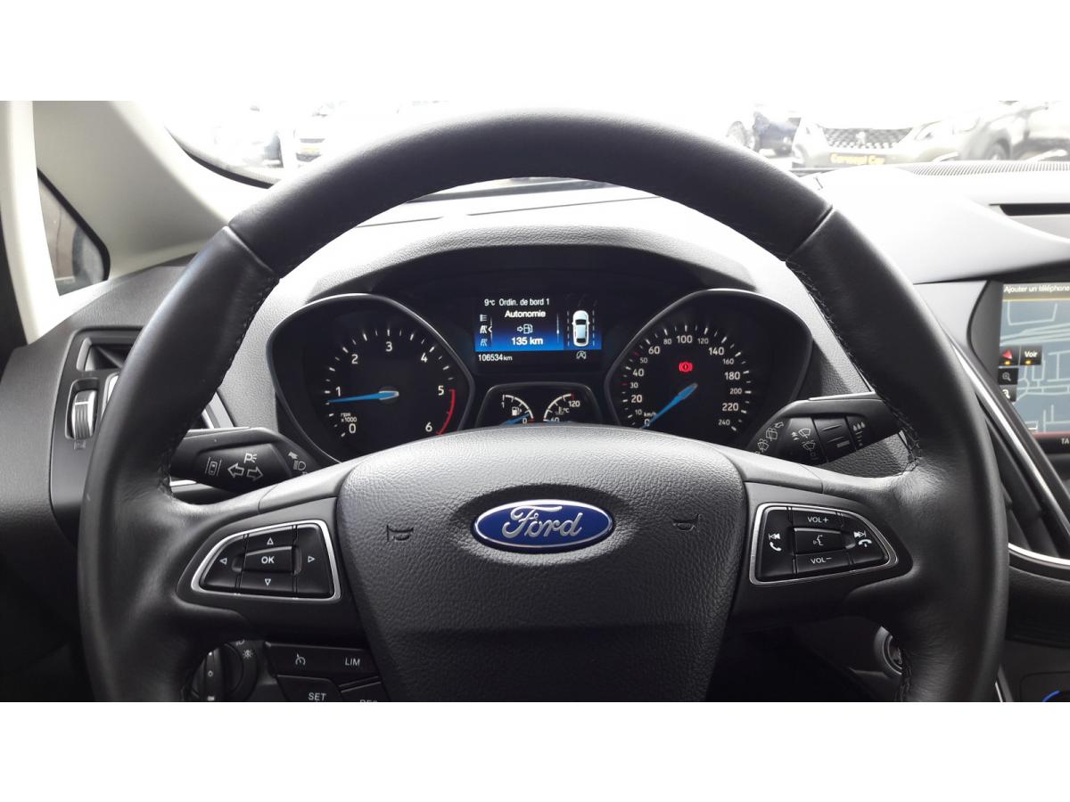 3 appuie-têtes arrière3 sièges arrière indépendants rabattables et déposablesABS avec répartiteur électronique de freinageAffichage des panneaux de signalisationAide au démarrage en côteAide au maintien dans la voieAide au stationnement arrièreAirbags frontaux conducteur et passagerAirbags latéraux avantAirbags rideauxAudio Nav SYNC II - Ford SYNC II (avec écran tactile 8", Bluetooth et commandes vocales avancées), Navigation Europe avec infoTrafic TMC, Guide Michelin, prises USB (2) et AUX, 6 haut-parleurs, commandes au volantAvertisseur d'angles mortsBecquet arrière couleur carrosserieClimatisation à régulation automatique bizone avec buses d'aération arrièreCommandes vocalesConsole centrale avant avec accoudoir coulissant et compartiment de rangement avec porte-gobeletsConsole de pavillon avec range-lunettesContrôle dynamique de stabilité (ESP)Direction assistée électrique (EPAS)Ecran multimédia tactile (radio MP3, Bluetooth, prises USB, SD et Jack)Fixations ISOFIX sur les sièges extérieurs de la 2ème rangéeGPS couleur - tactileHayon electriqueKeyless (démarrage par bouton poussoir)Kit de réparation pneumatiqueLève-vitres avant et arrière électriquesOrdinateur de bord couleur 4,2"Pare-chocs avant et arrière couleur carrosseriePommeau de levier de vitesses gainé cuirProjecteur antibrouillard avant avec enjoliveurs chromésProjecteurs halogènes avec feux de jour à LEDRégulateur et limiteur de vitesseRétroviseur intérieur électrochromatique (automatique jour/nuit)Rétroviseurs extérieurs électriques et chauffants couleur carrosserie avec répétiteur de clignotantSiège conducteur à réglage manuels en hauteur et lombaireSiège passager avant avec réglage manuel de la hauteur et du support lombaireSièges avant confortSystème de surveillance de la pression des pneusVerrouillage centralisé avec commande à distanceVolant gainé de cuir réglable en hauteur et en profondeur