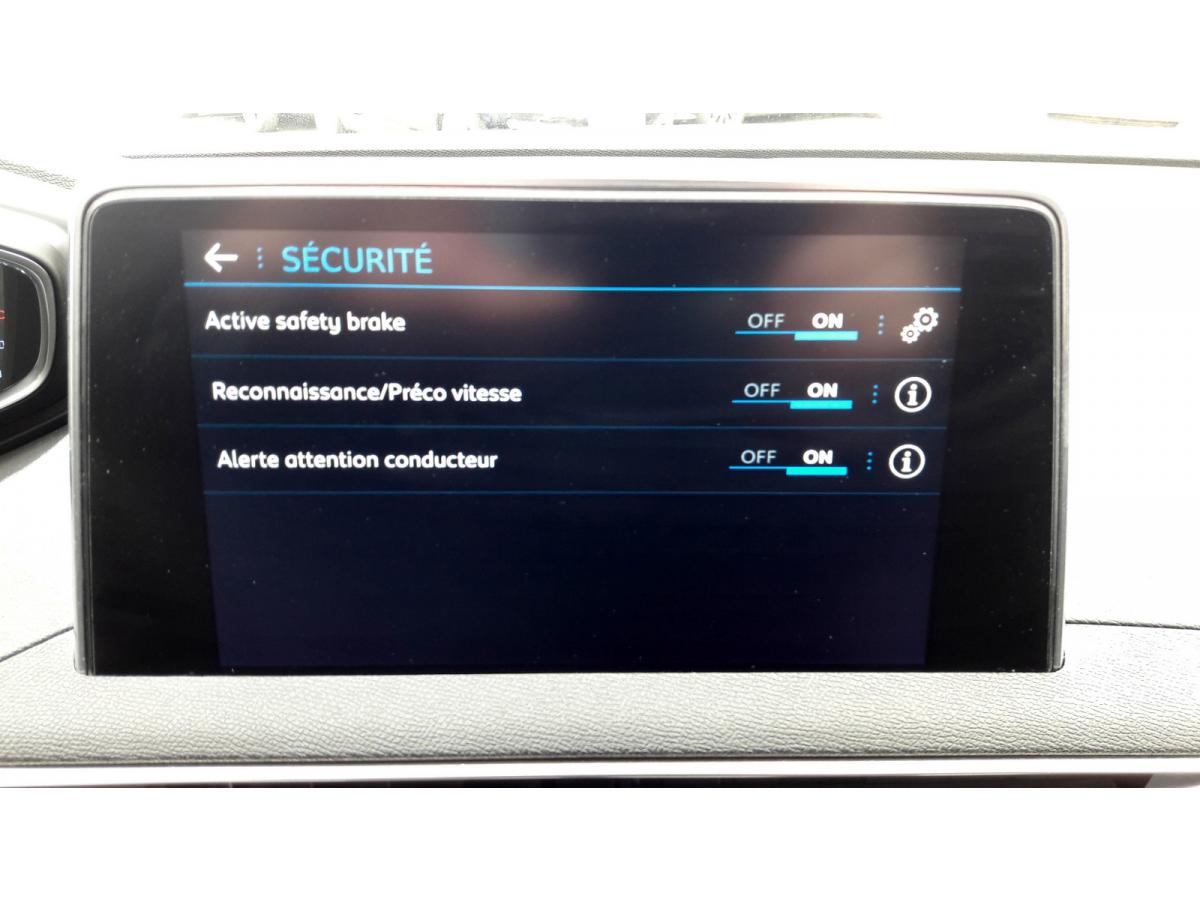 2 spots de lecture à l'arrièreABS avec répartiteur électronique de freinage (REF) et aide au freinage d'urgence (AFU)Accoudoir central avant à ouverture papillon, avec compartiment de rangement éclairé et réfrigérableAdvanced grip control antipatinage optimisé à 5 modes d'adhérence<br>hill assist descent control (contrôle de la vitesse en descente)<br>jantes alliage 18' 'los angeles' avec pneumatiques mud and snow (boue et neige)Aide graphique et sonore au stationnement arrièreAir conditionné automatique bi-zone avec aérateurs aux places arrièreAirbags frontaux conducteur et passager adaptatifsAirbags latéraux conducteur et passager avantAirbags rideaux de tête aux places avant et arrièreAlerte de temps de conduiteAppuis-tête à sécurité optimisée réglables en hauteur sur les sièges conducteur et passager avant ainsi que sur les places latérales arrièresAvertisseur d'angles mortsBadge Crossway sur ailes avant et sérigraphie sur montants de portesBandeau de pare-choc arrière chroméBanquette rabattable 1/3 - 2/3 (modularité 'Magic Flat' et commandes dans le coffre) avec accoudoir et trappe à skisBarres de toit longitudinales profilées en aluminiumBoîte à gants floquée et éclairéeBoîtiers de rétroviseurs extérieurs chromésCalandre avec jonc périphérique et facettes chromésCamera recul avec vision arriere et en hauteurCarte d'accès et démarrage mains libresCeintures avant à 3 points, réglables en hauteur, avec prétensionneurs et limiteurs d'effortCeintures de sécurité arrière trois points à enrouleur (x3), avec prétensionneurs et limiteurs d'effort aux places latéralesCommande de verrouillage à distance (deux plips)Contrôle dynamique de stabilité CDS avec antipatinage électronique ASRDétection de sous-gonflage indirecteDeux porte-gobelets intégrés à la console centraleDirection assistée électrique, avec colonne de direction réglable en hauteur et profondeur (mécanique)Eclairage intérieur à LED : plafonniersEnjoliveurs en inox sur les protecteurs de bas de portesEssuie-vitre arrière à activation automatique au passage en marche arrièreEssuie-vitre avant avec système de lavage 'Magic Wash'Filets aumônières au dos des sièges avantFixations pour trois sièges enfants suivant norme ISOFIX aux places passager avant et latérales arrièreFonction Mirror ScreenFrein de stationnement électrique avec aide au démarrage en penteIndicateur de rapportLève-vitres électriques avant et arrière, séquentiels et antipincementMiroirs de courtoisie éclairésPédalier et repose-pied conducteur en aluminiumPack Eclairage d'ambiancePack Safety PlusPack VisibilitéPalettes de changement de vitesses au volantPassages de roues rapportés noirsPeugeot Connect : Navigation 3D connectée avec reconnaissance vocale + PEUGEOT Connect SOS & AssistancePeugeot i-Cockpit combiné tête haute numérique reconfigurable, écran tactile capacitif 8" et volant compact multi-fonctionsPlafonnier avant avec spots de lecture (x2) et plafonnier arrière à extinction temporiséePoignées de maintien (x4) rétractables avec frein (crochets pour cintres aux places arrière)Prise 12V (x3) : à l'avant, à l'arrière et dans le coffrePrise USBProjecteurs antibrouillard LedRégulateur et limiteur de vitesseRétroviseurs extérieur électriques et dégivrantsRétroviseurs extérieurs rabattables électriquement avec éclairage d'approche à LEDRadio 6 HP, bi-tuner compatible MP3 et connectivité Bluetooth (audio streaming, kit mains libres), avec commandes au volant, écran tactile capacitif 8"Reconnaissance des panneaux de vitesse et préconisationSécurité enfant électrique des vitres arrièreSellerie TEP & Alcantara avec typage CrosswaySeuils de portes avant en inox avec typage CrosswaySiège conducteur à réglage lombaireSiège conducteur réglage en hauteurSiège passager à réglage manuel en hauteurSiège passager avant avec mise en tabletteSurtapis avant/arrièreToggle Switches' chromés (touches 'piano' d'activation des fonctions de l'écran tactile)Toit 'Black Diamond' (toit Noir Perla Nera)Verrouillage automatique de tous les ouvrants en roulantVitres latérales arrière et lunette arrière surteintéesVolant cuir pleine fleur
