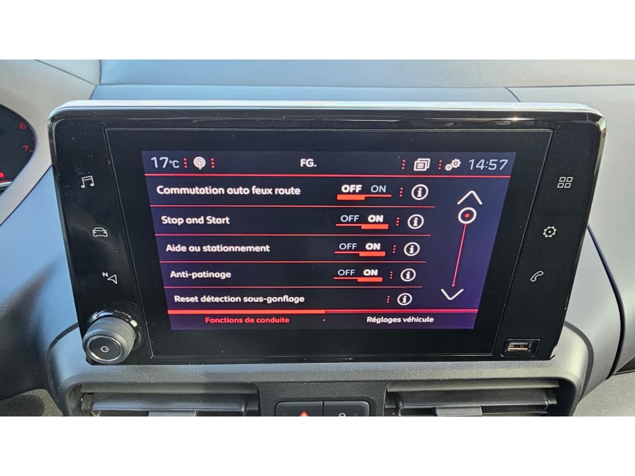 ABS (Antiblocage de roues)AFUI (assistance au freinage d'urgence intelligent)Aide au stationnement arrièreASR avec push inhibiteur (antipatinage à l'accelération)Climatisation automatique bi-zone, avec aérateurs à l'arrièreCombiné analogique avec matrice couleur 3,5'' TFTConsole centrale haute avec rangementsContrôle dynamique de trajectoire (ESP)ESC (Correcteur électronique de trajectoire)Lève vitres électriques avant et arrière impulsionnelsLunette arrière fixe chauffante avec essuie-vitrePortes latérales coulissantes droite et gauche avec vitres descendantes, vitres fixes en rang 3, vitrages arrière teintésProjecteurs avec feux diurnes avec DRL à LED et module elliptiqueRadio connectée, écran tactile capacitif 8'' couleur, 1 prise USB en facade, Bluetooth, Mirror Screen et fonction DAB (Radio Numérique TerrestreTablette arrière cache-bagages à 2 positionsVolant cuirVolant réglable en hauteur et en profondeur
