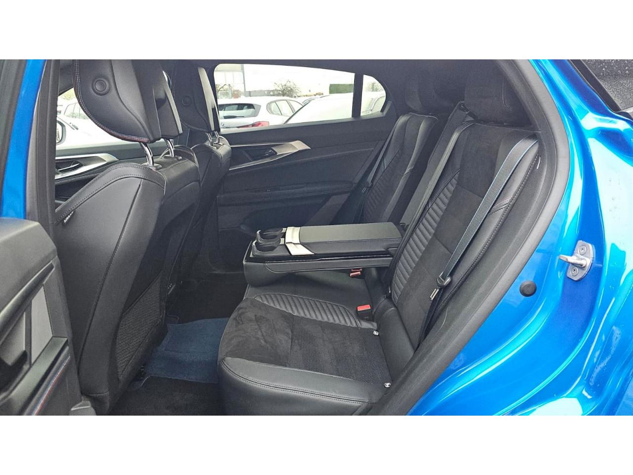 - Sellerie Alcantara recyclée avec perforations bleues / tissu refined grain fin (surpiqûres bleu/blanc/rouge)